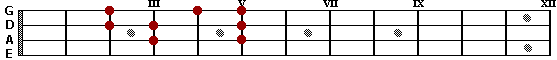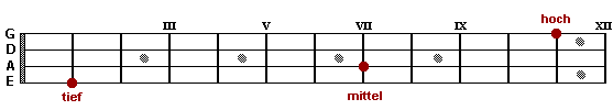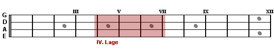 Folgendes Beispiel zeigt die IV. Lage. Der 1. Finger liegt also auf dem 4. Bundstäbchen.